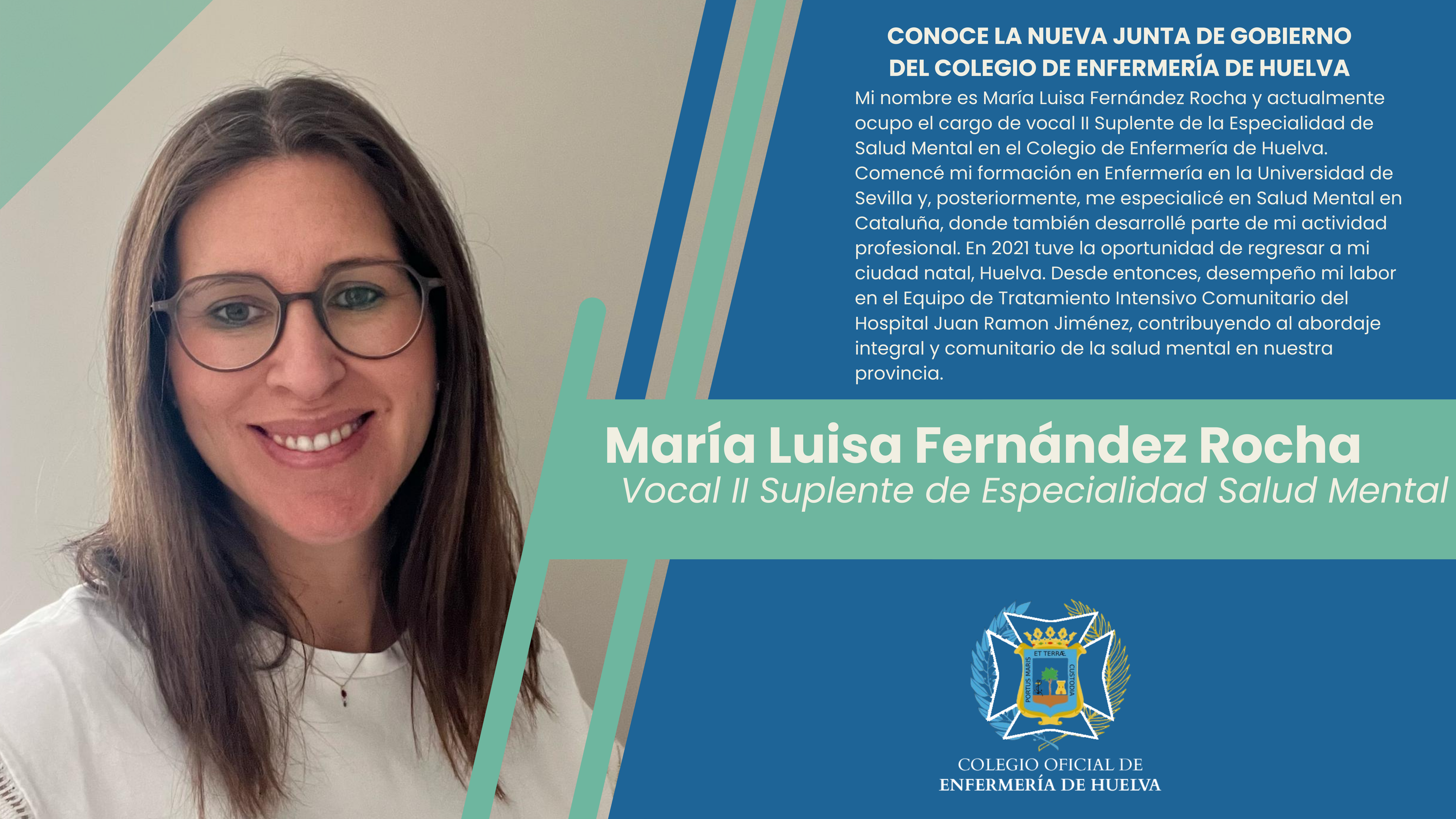 - María Luisa Fernández Rocha (Vocal II Suplente de Especialidad Salud Mental) – Nº Colegiado: 5.668