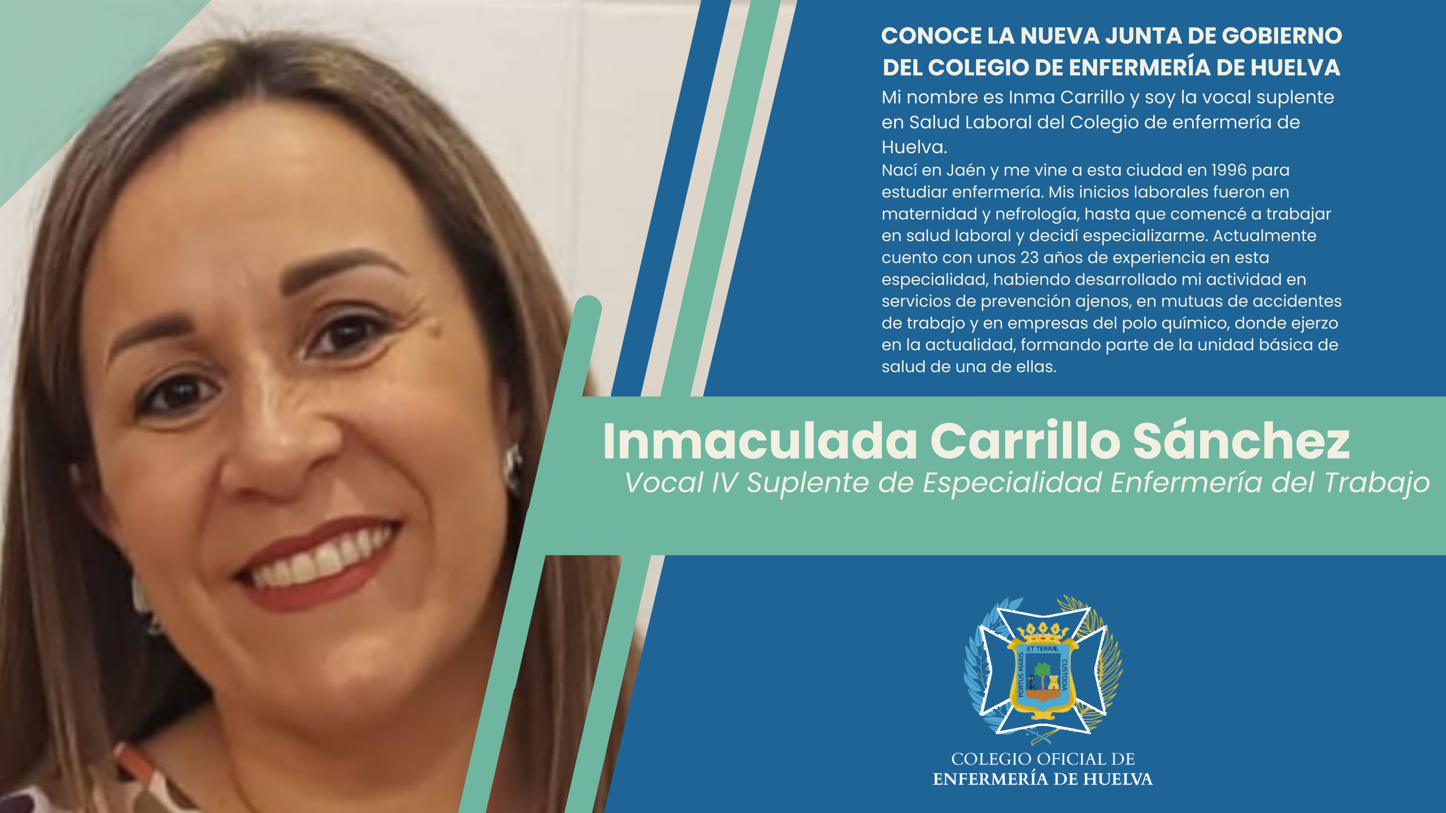 - Inmaculada Carrillo Sánchez (Vocal IV Suplente de Especialidad Enfermería del Trabajo) – Nº Colegiado: 4.186