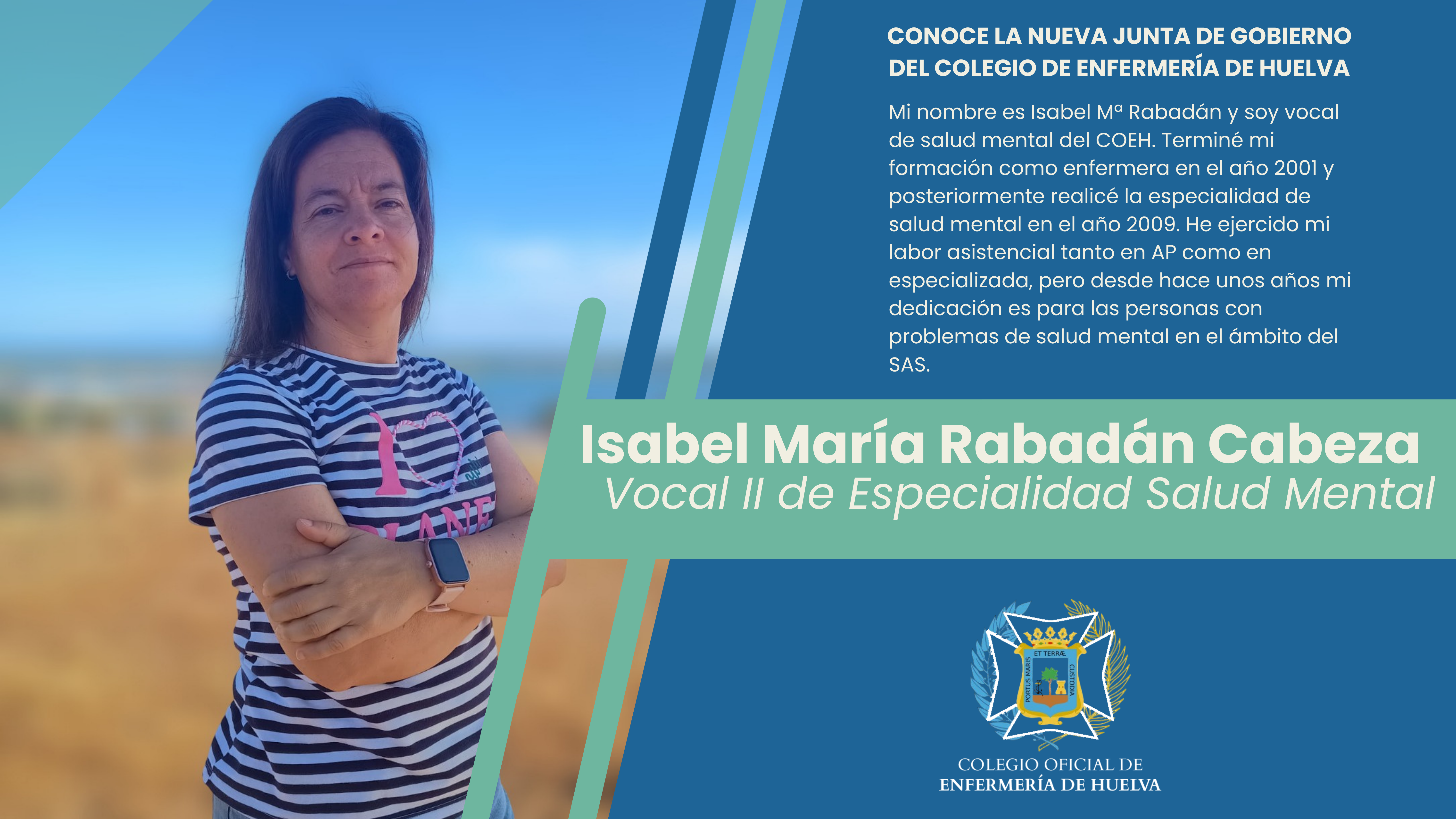 - Isabel María Rabadán Cabeza (Vocal II de Especialidad Salud Mental) – Nº Colegiado: 4.715