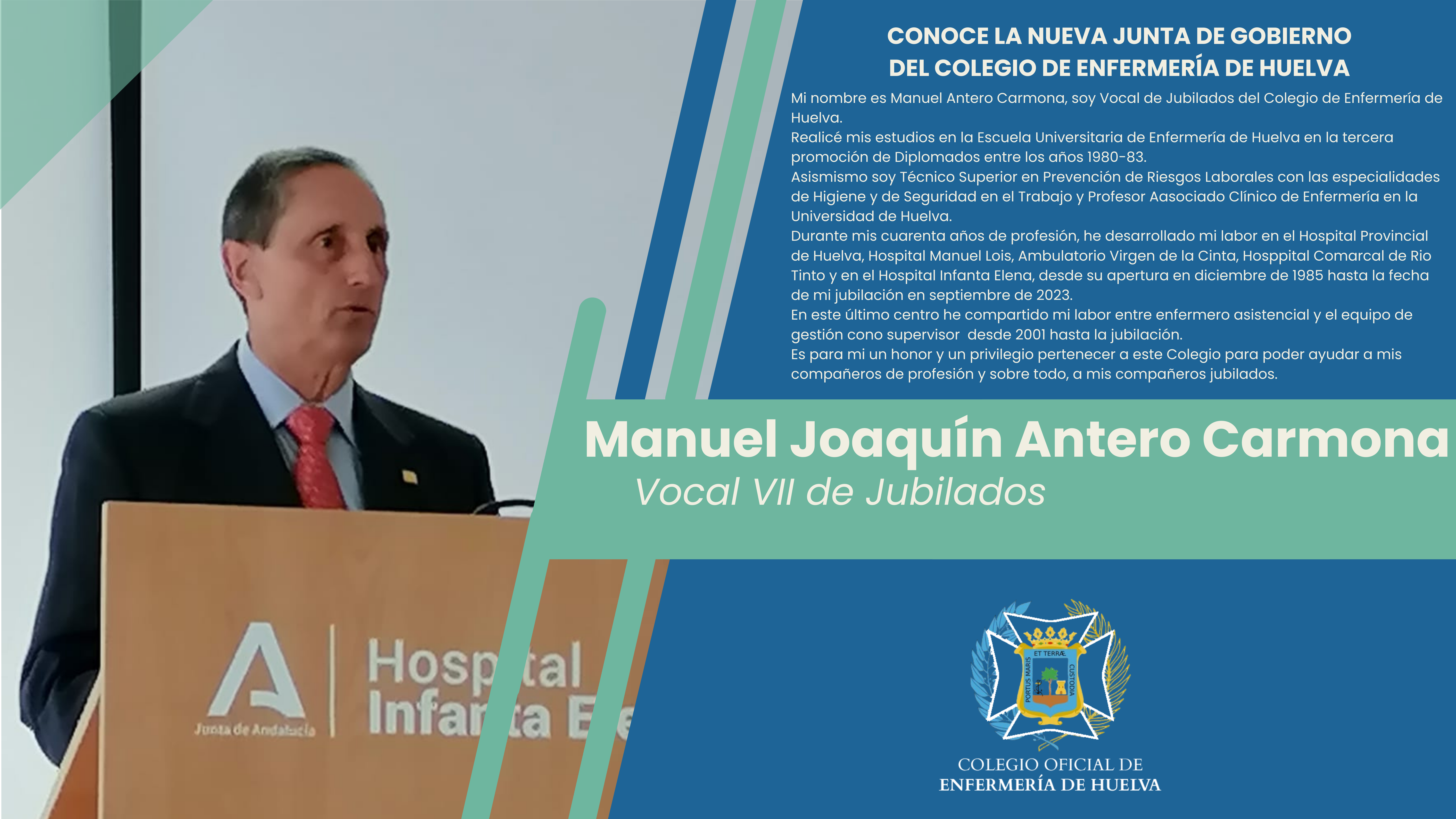 - Manuel Joaquín Antero Carmona (Vocal VII de Jubilados) – Nº Colegiado: 1.342